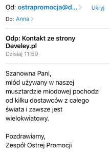 Doktor Ania / Raporty / Raport: jaki miód zawiera musztarda miodowa Develey? / image